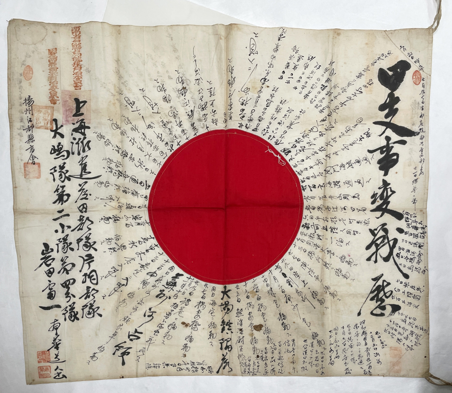 鉴赏环节,一面布满字迹的旗帜尤为引人注目。“十三日扬子江渡河”“七日同济大学”“大场镇陷落”……这面侵华日军上海派遣军签名战历旗上的文字清晰记录着该部队1937年至1939年的行迹,是直接反映日军侵华的罪证。