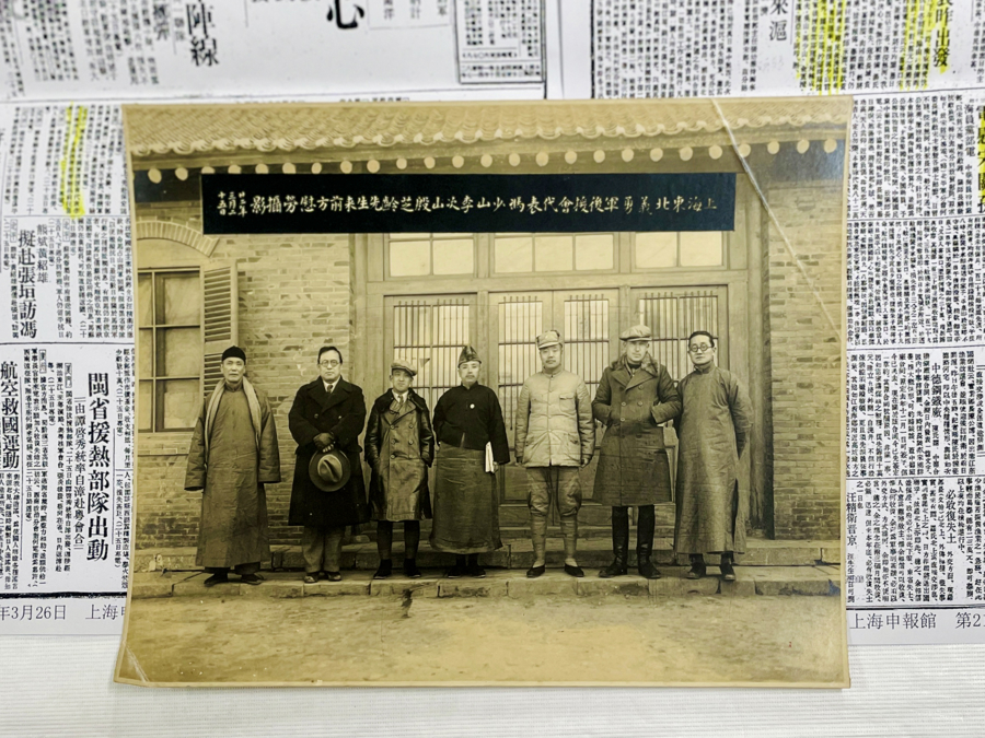 上海东北义勇军后援会(成立于1932年)核心成员冯少山、李次山、殷芝龄于1933年3月25日的合影,弥补了《申报》等文字记载中影像的缺失,对还原上海民间抗日运动具有重要的“证史”、“补史”价值。