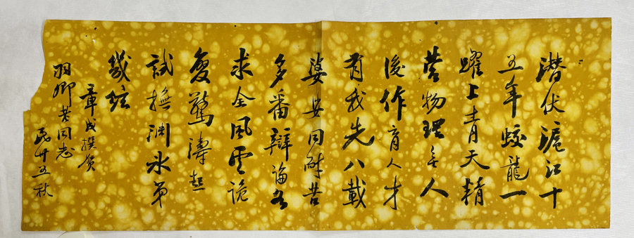 救亡图存之际,上海各界在不同战线主动投身抗战事业。1946年秋,沪江大学郑章成致涂羽卿的贺幅中,提到二人于抗战中“八载同耐苦”的经历,呈现了抗战期间知识分子在艰苦环境中坚持办学、培育人才的历史事实。