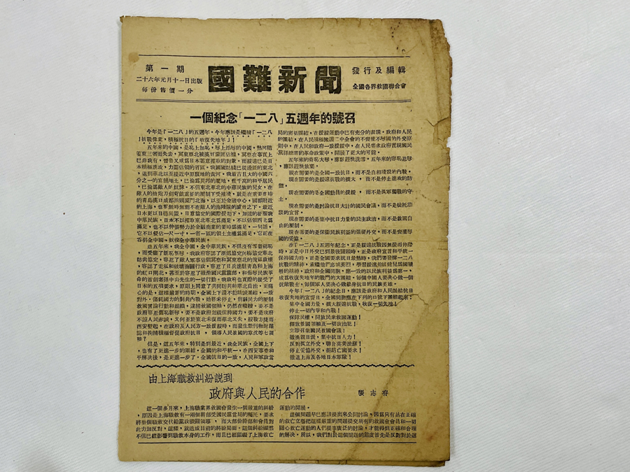 1937年全国各界救国联合会发行《国难新闻》创刊号。