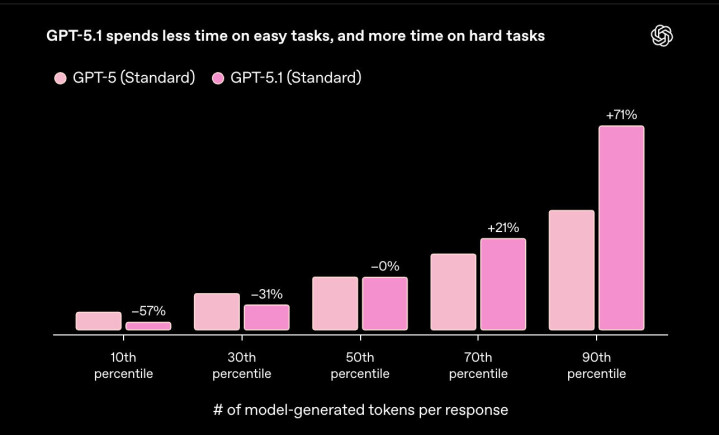 主打专业推理的GPT-5.1Thinking则实现了思考节奏的智能调节,简单任务响应速度较前代提升两倍,复杂问题则延长思考周期输出详尽答案,且大幅减少专业术语与晦涩表达,非技术人员也能轻松理解复杂概念。