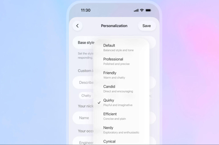GPT-5.1的另一大亮点是个性化定制功能的全面升级。OpenAI推出了八大对话风格矩阵,在优化“默认”“友好”“高效”三种经典风格基础上,新增“专业”“直言不讳”“古怪”三类选项,叠加保留的“愤世嫉俗”“书呆子气”风格,覆盖工作、社交、创作等多元场景。针对进阶用户,平台还测试精细化调节功能,支持自定义回答简洁度、语气温暖度、易读性及emoji使用频率,更具备智能感知能力。当模型捕捉到用户对话中的风格偏好时,会主动建议更新设置,实现“无需手动即可个性化”。所有设置调整实时生效。